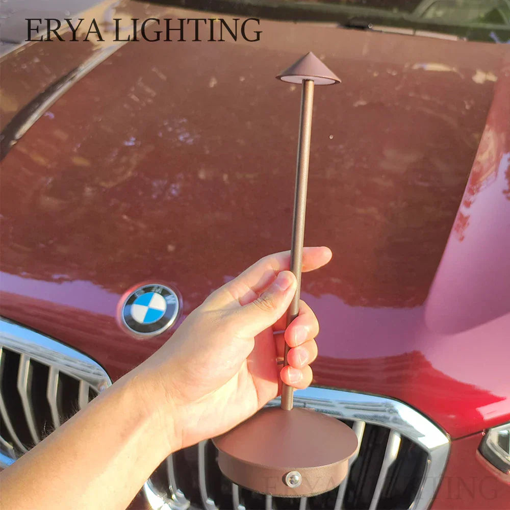 Stylish, rechargeable LED lamp with touch control. Perfect for dining rooms, coffee tables, or as a decorative desk lamp.