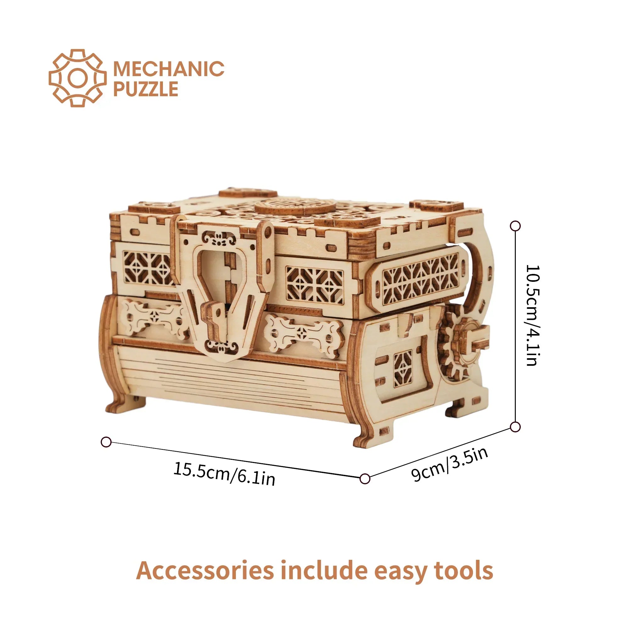 Build your own antique-style jewelry box with this 3D wooden puzzle kit. Combines fun and functionality for kids and adults alike.