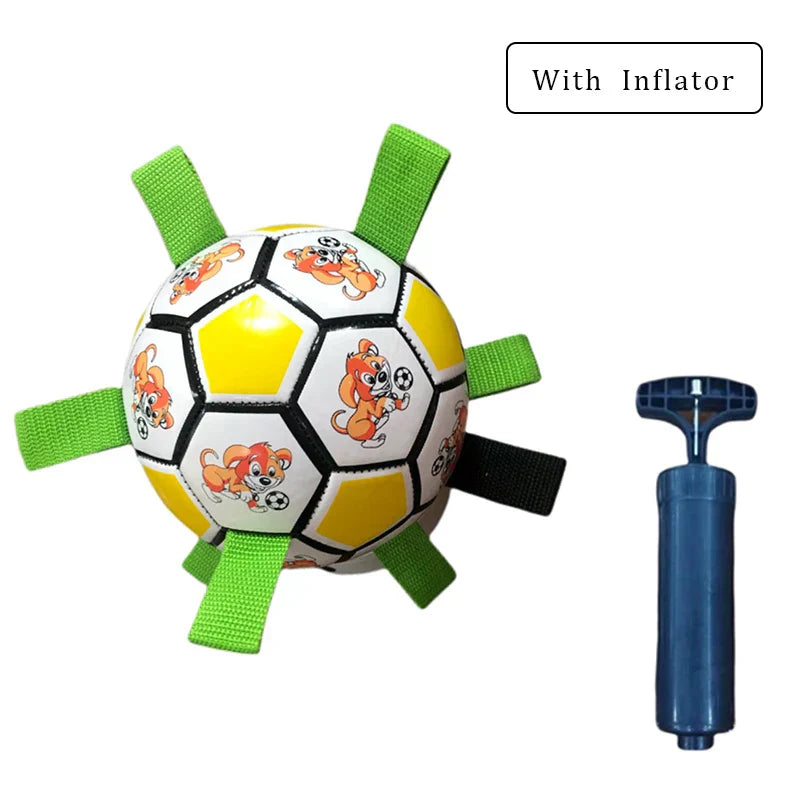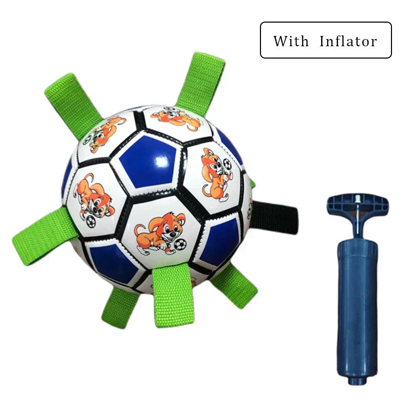 Durable soccer ball toy for dogs. Ideal for outdoor training and play, with a chew-resistant design for medium to large dogs.