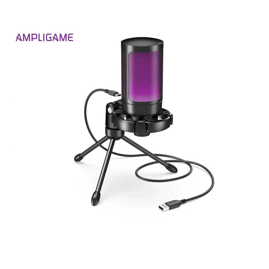 Light up your streams with this RGB USB microphone. Features touch mute, condenser mic, and tripod for gaming, streaming, or podcasting.